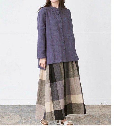 D*g*y (デコ・カンパニー) バンドカラーブラウス 綿スラブWガーゼ/ブルーグレー/M/D9525
