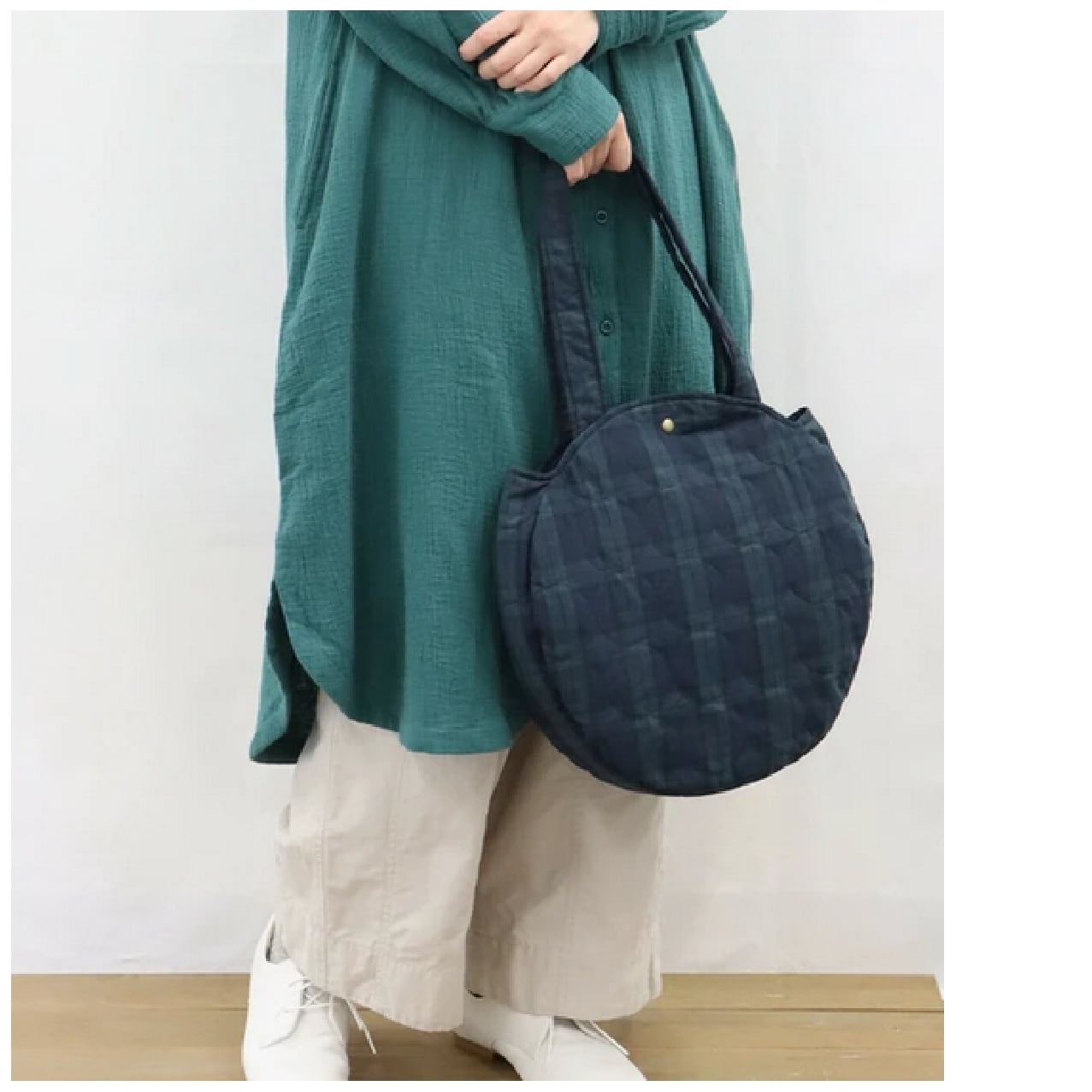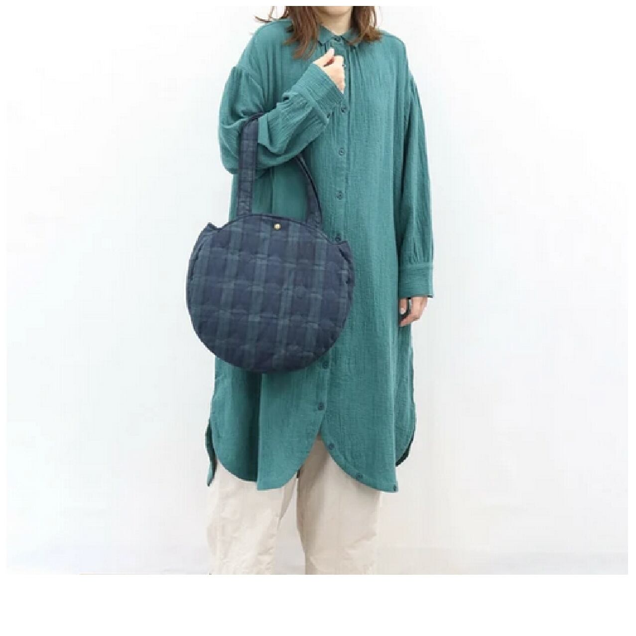 ノンノ キルト丸型バッグ/A4対応/ブラックウォッチ柄/内ポケット付