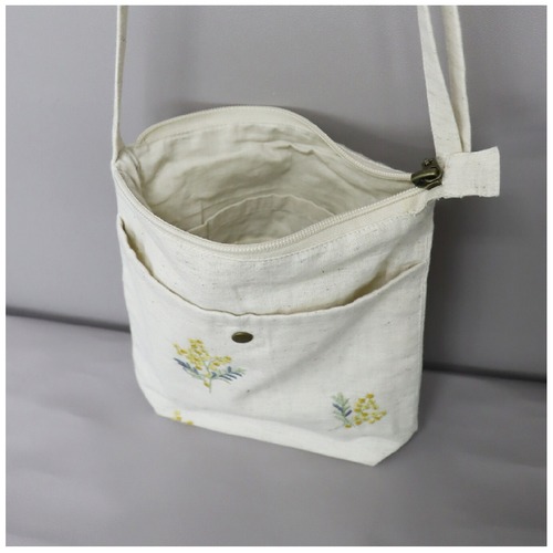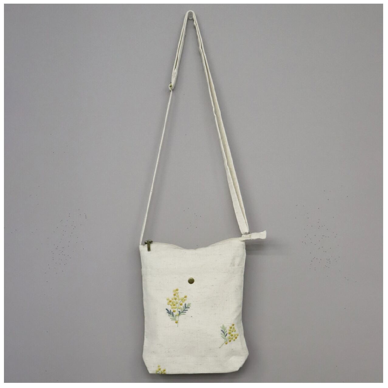 ノンノ 綿麻ミモザ柄刺繡 ショルダーバッグ