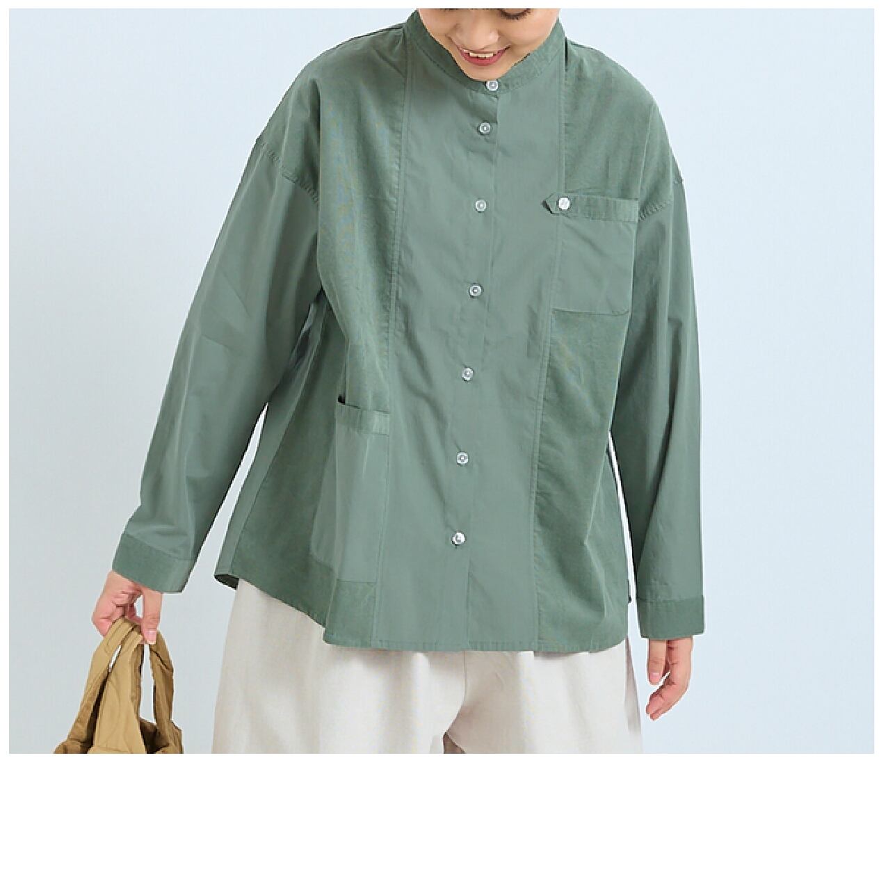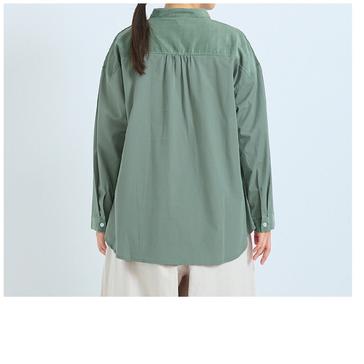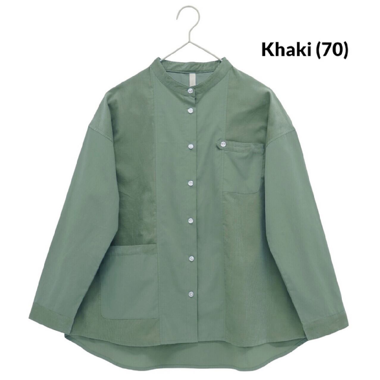 ノンノ 細コーデュロイ×布帛コンビ切替ブラウス/カーキ/M~L