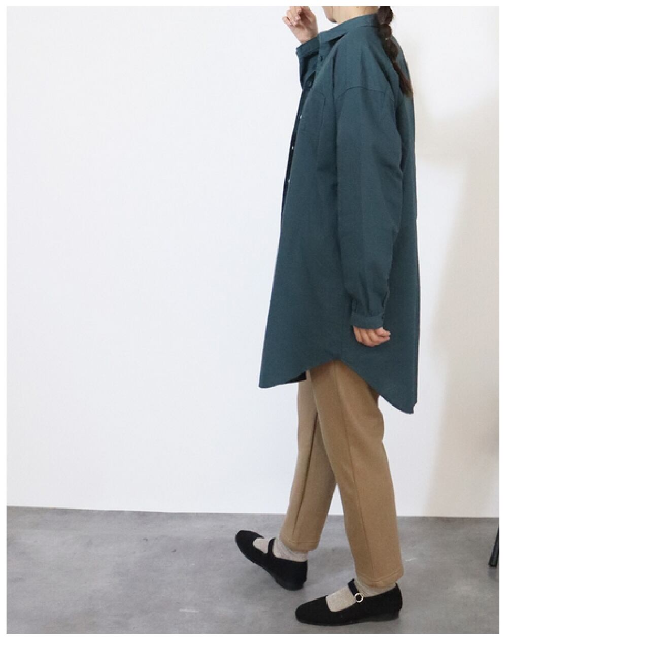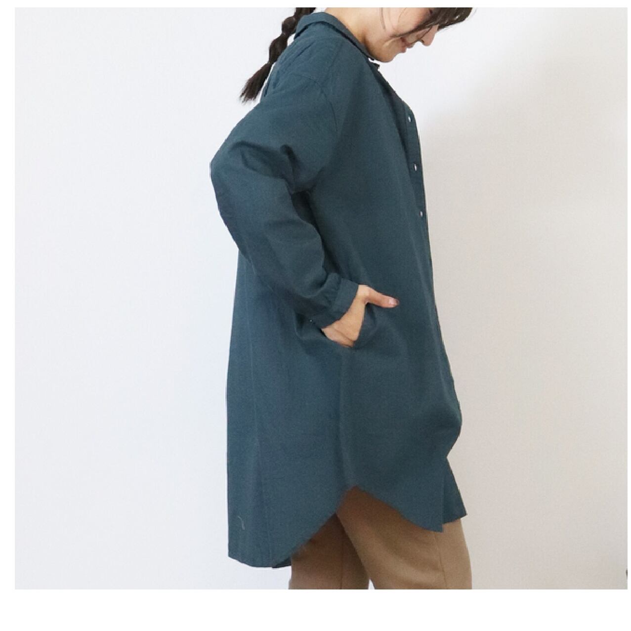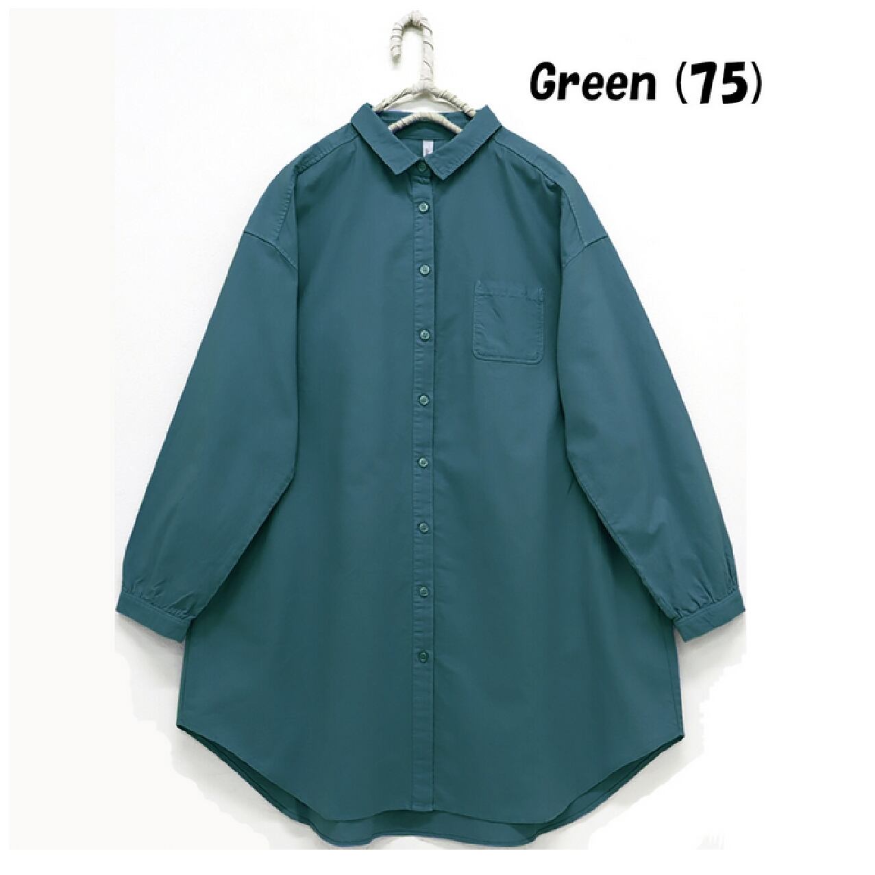 ノンノ 製品染め コットンオックス布帛 シャツチュニック/グリーン/M~L