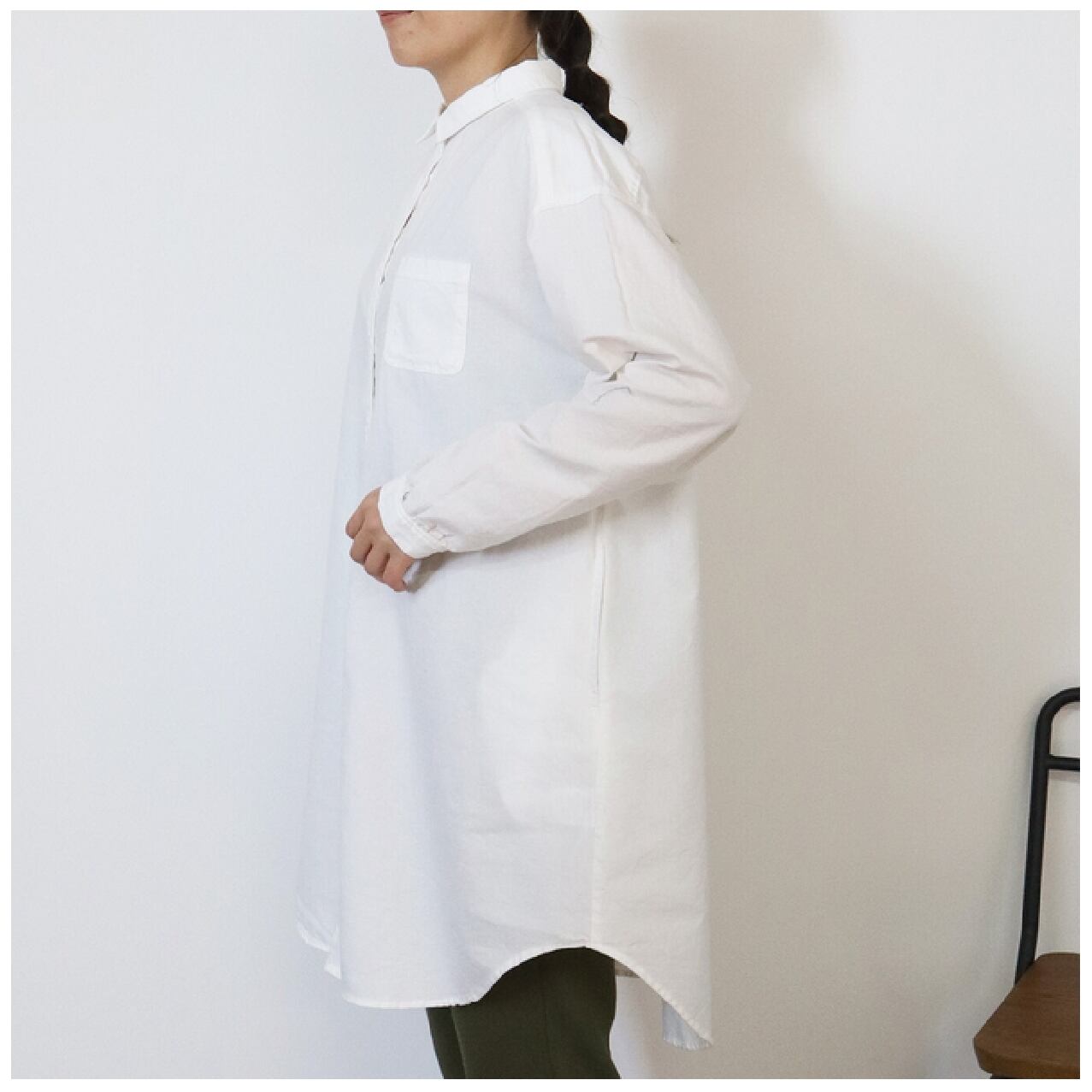 ノンノ 製品染め コットンオックス布帛 シャツチュニック/アイボリー/M~L