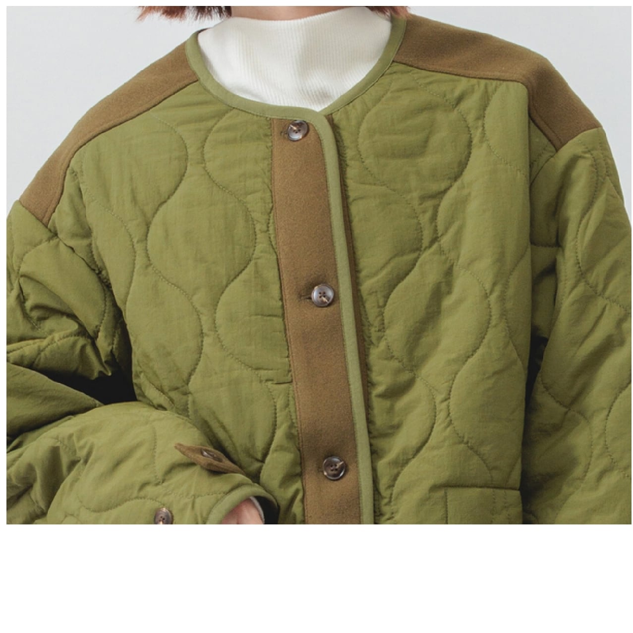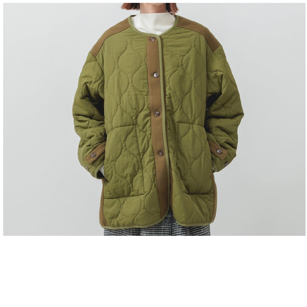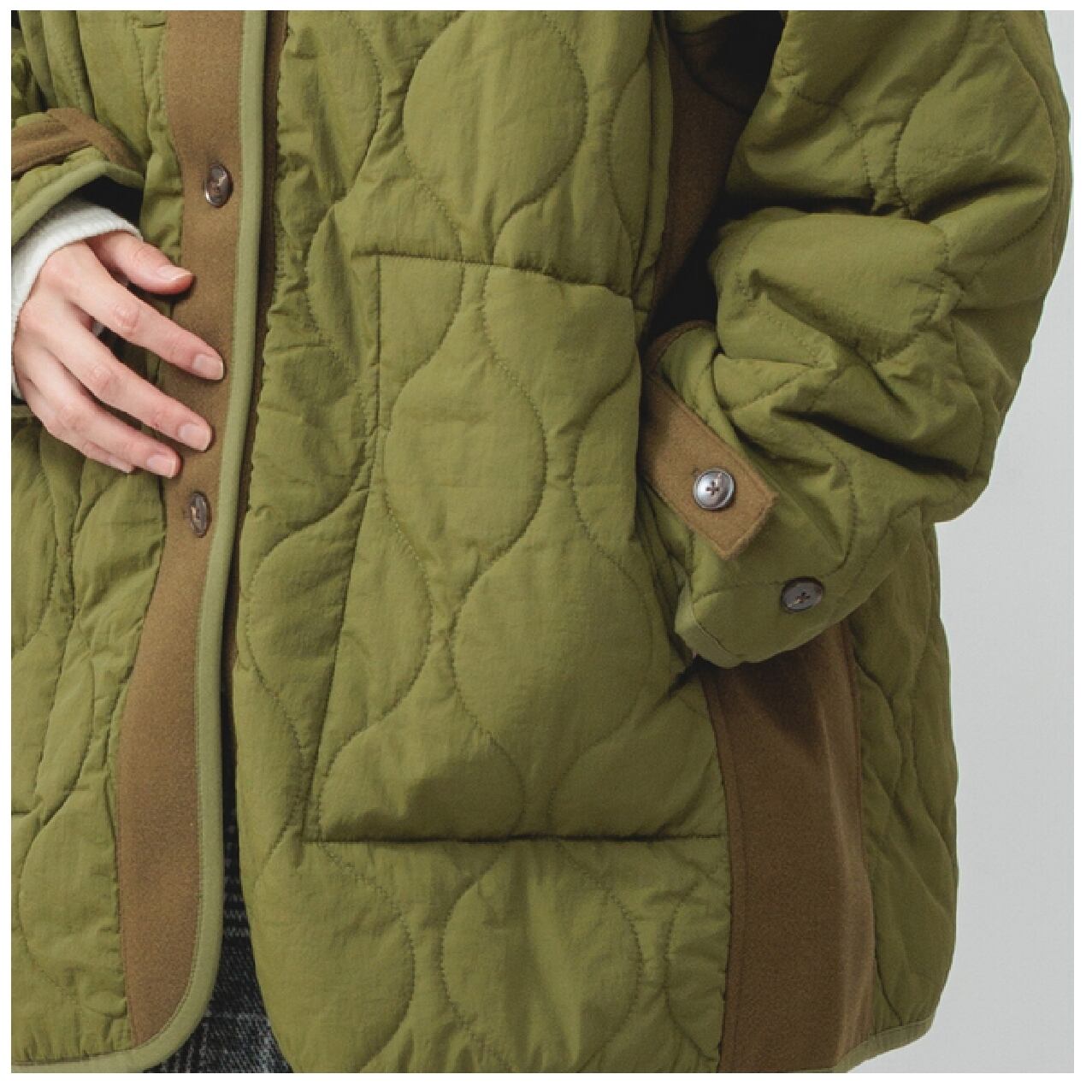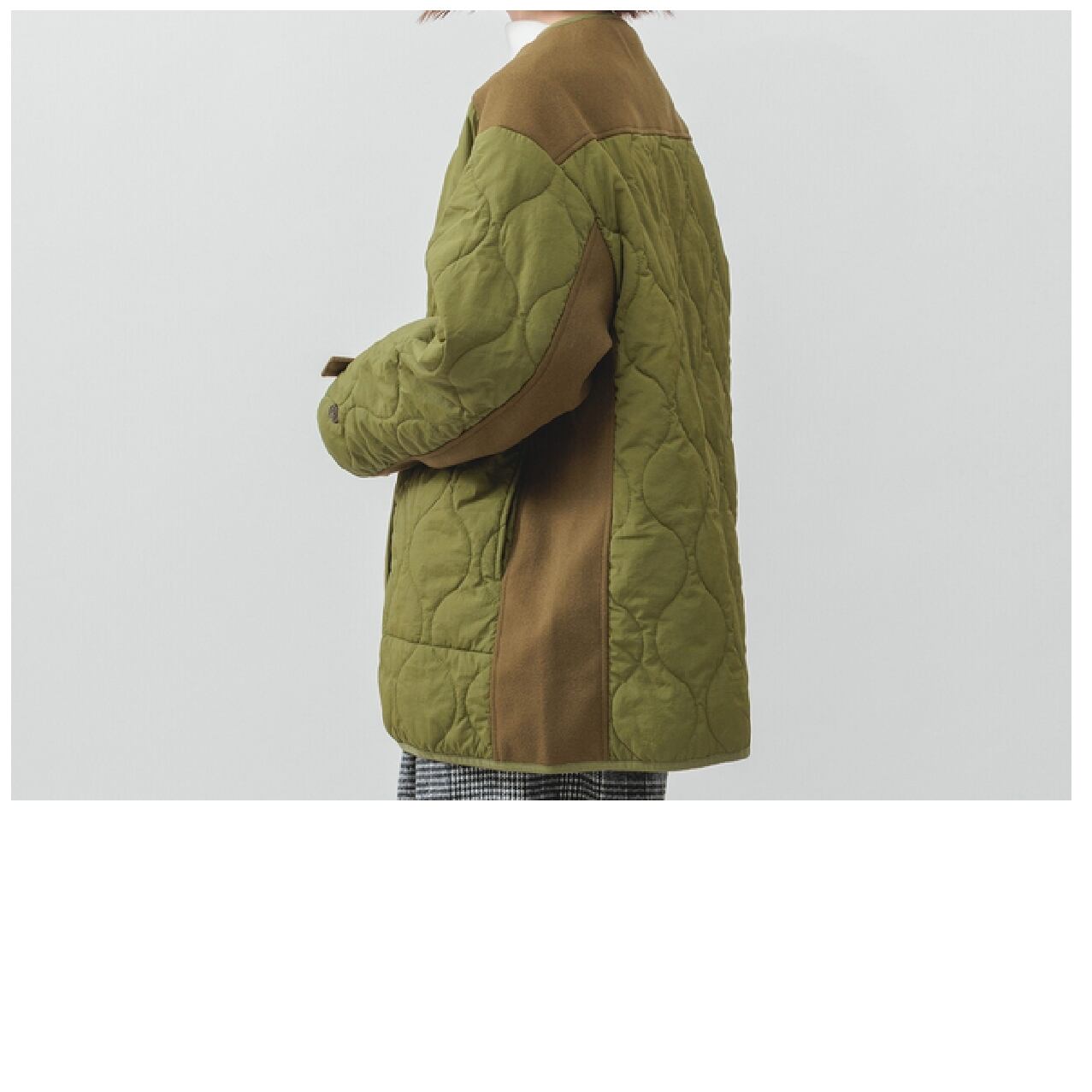 異素材キルト中綿ジャケット/カーキ/M~L