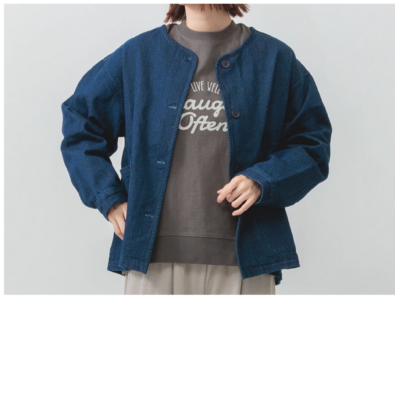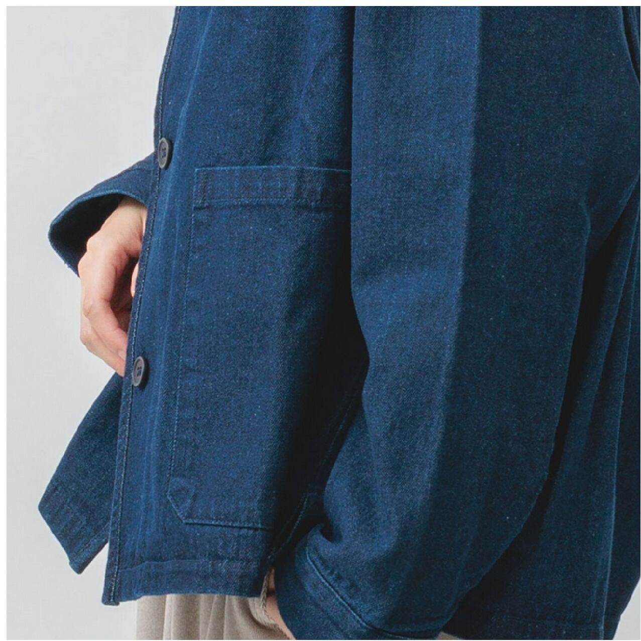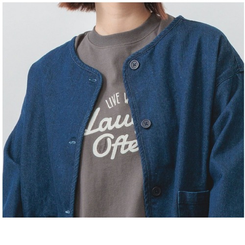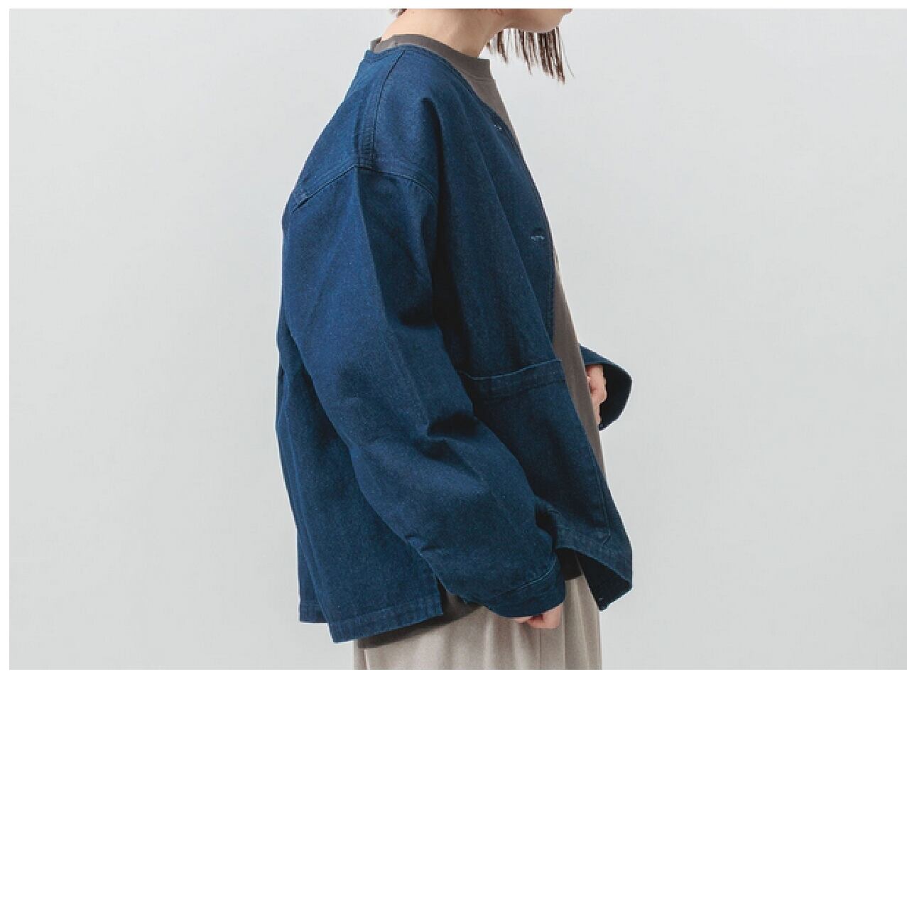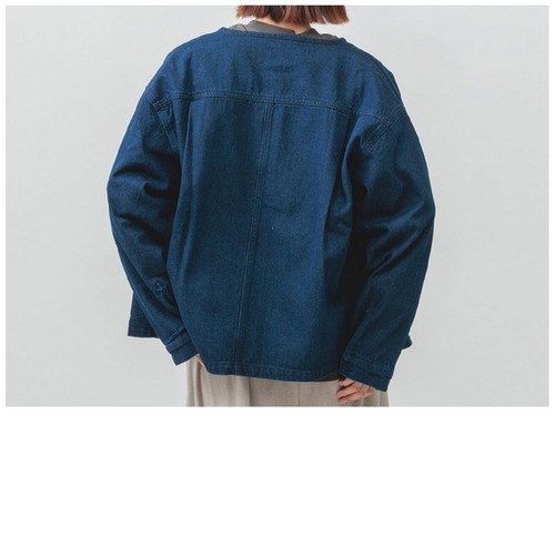 9ozデニムノーカラージャケット /ネイビー/M~L