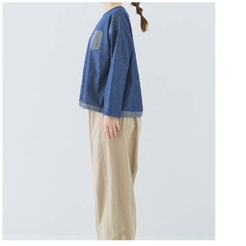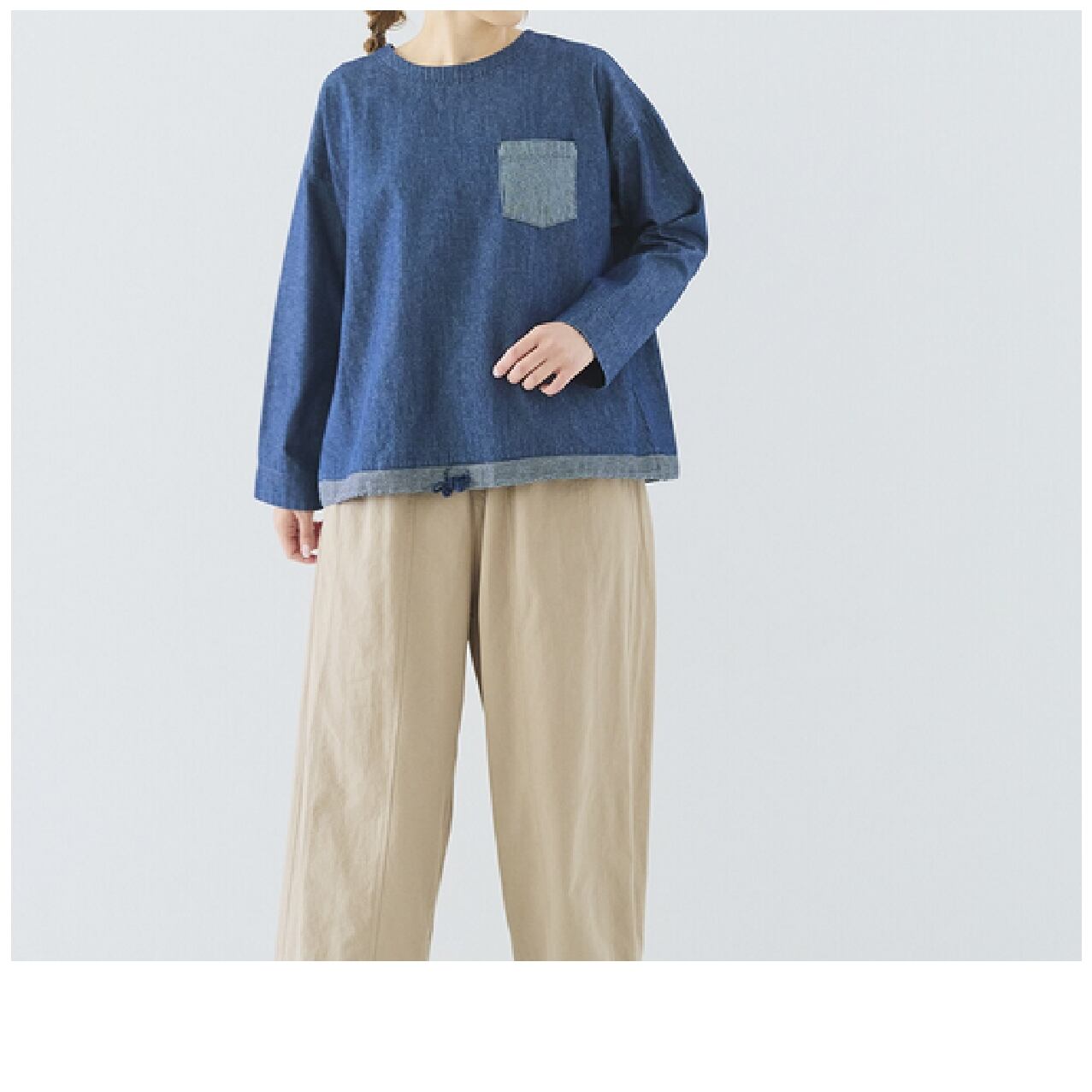 6ozデニムライクな綿素材をベースに、ピグメント加工でくったりと柔らかく、洗いをかけたようなナチュラルな表情に。