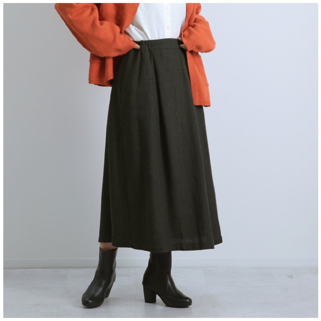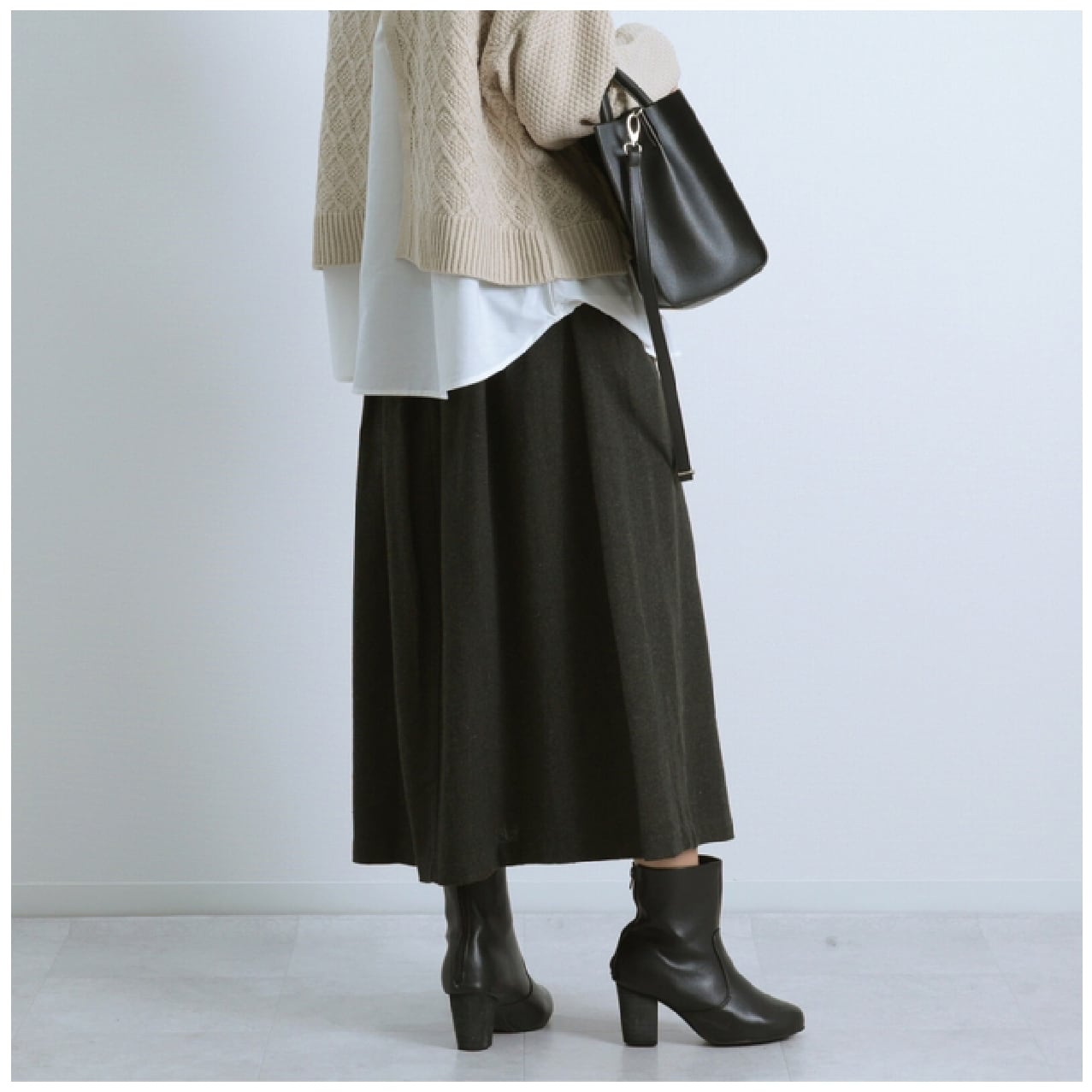 ふんわりとしたシルエットのスカートには、重ためのニットやトレーナーと相性抜群。