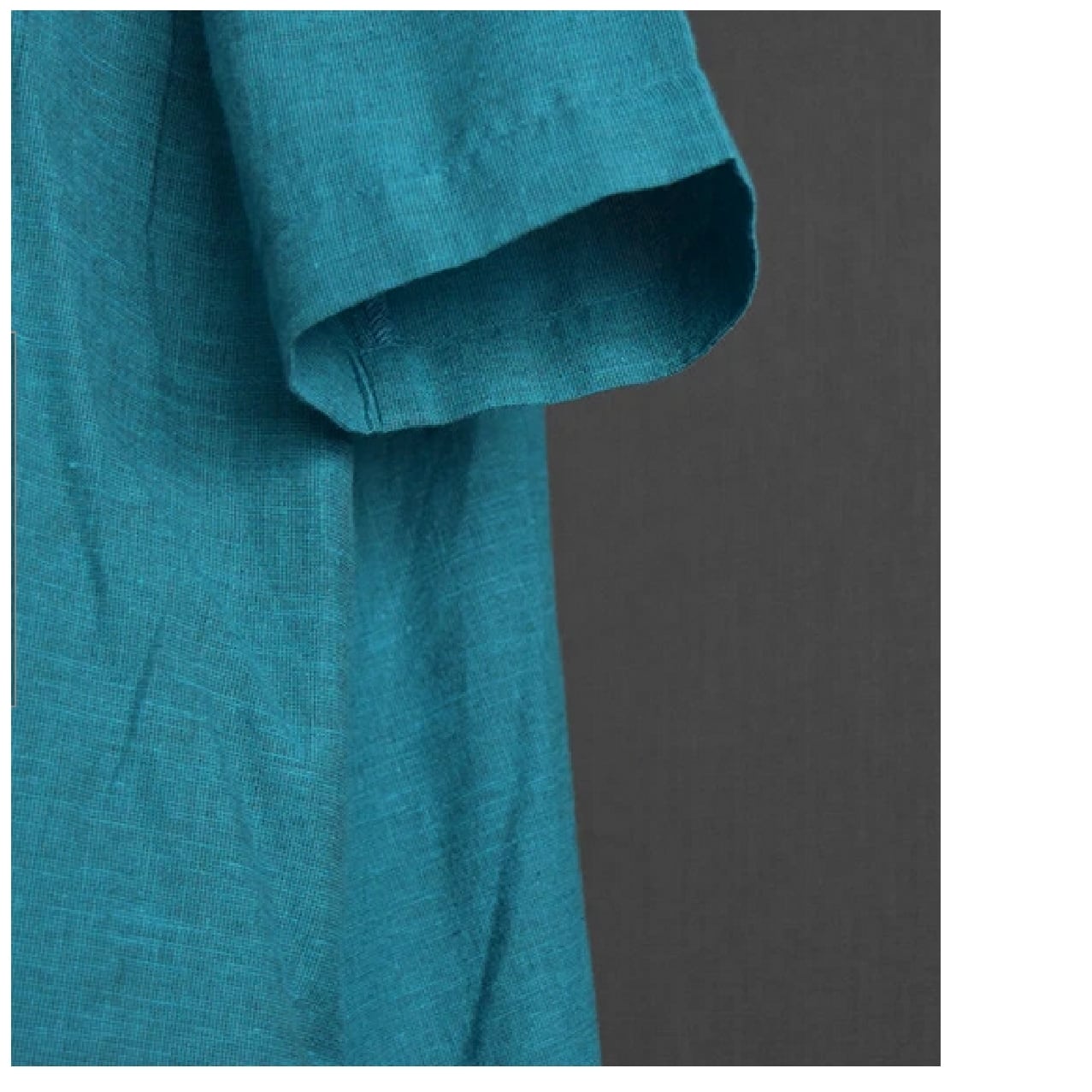 綿麻の色味や風合いに奥行きがある生地感です ■カラー ターコイズ ■素材 綿85%、麻15% ■サイズ 身幅58cm 着丈85cm ■税込定価 8,800円