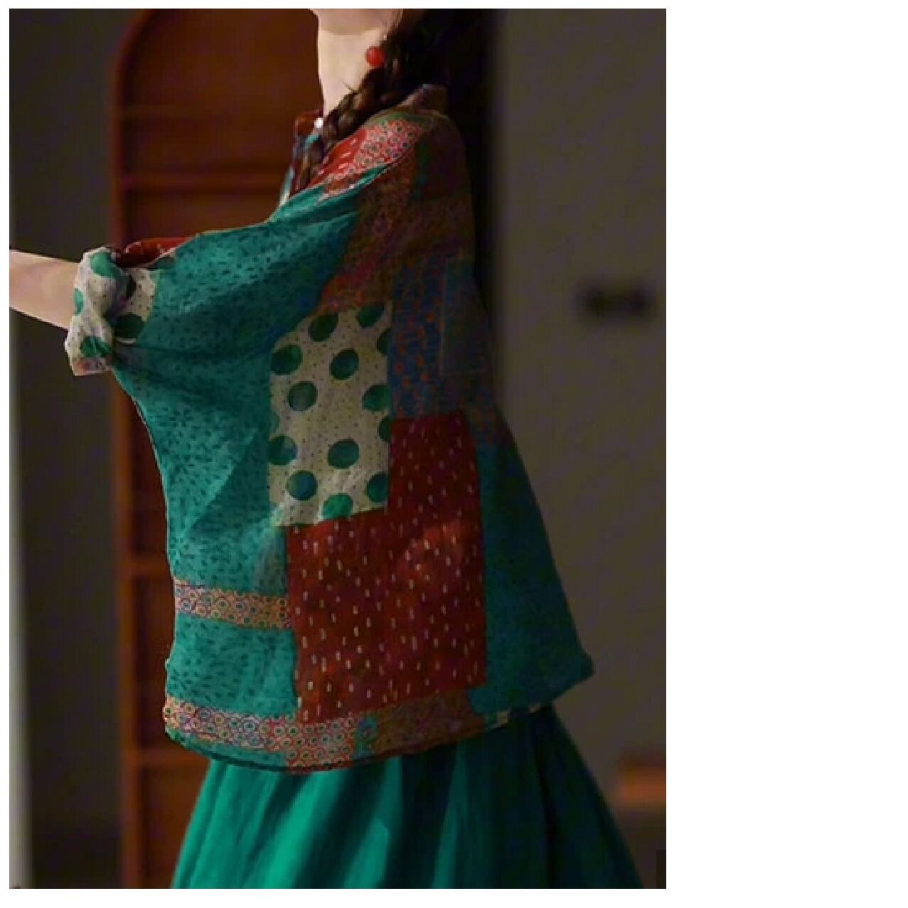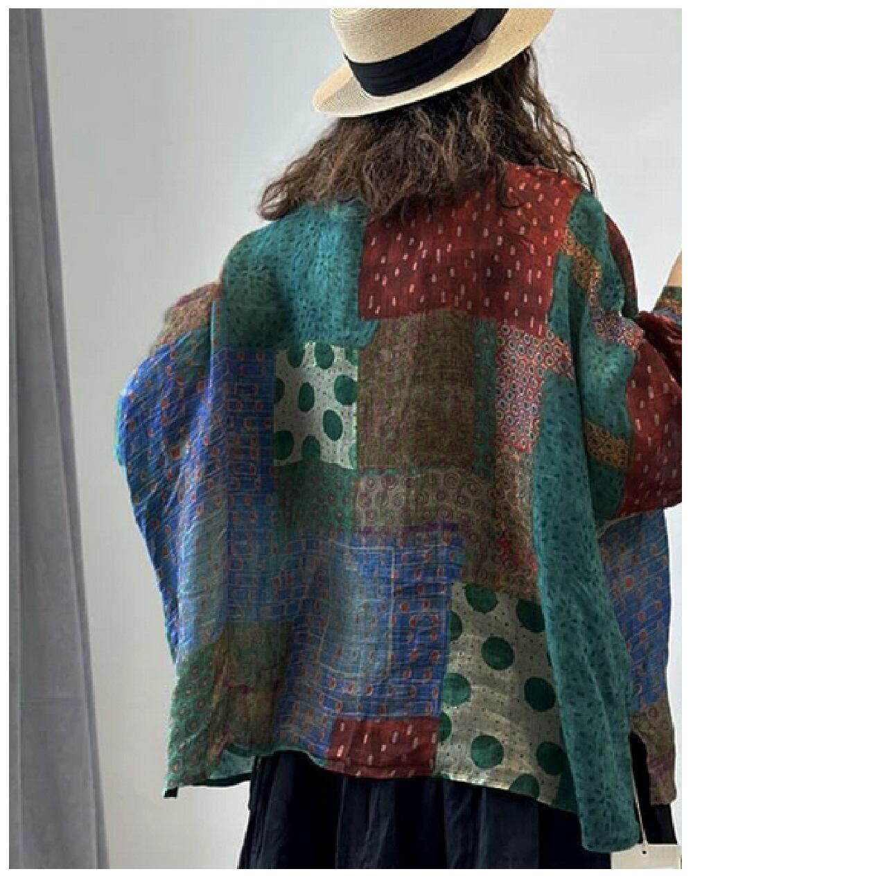 ゆったりドルマン・レトロxアジアプリント柄コットンシャツ/ミックス/F