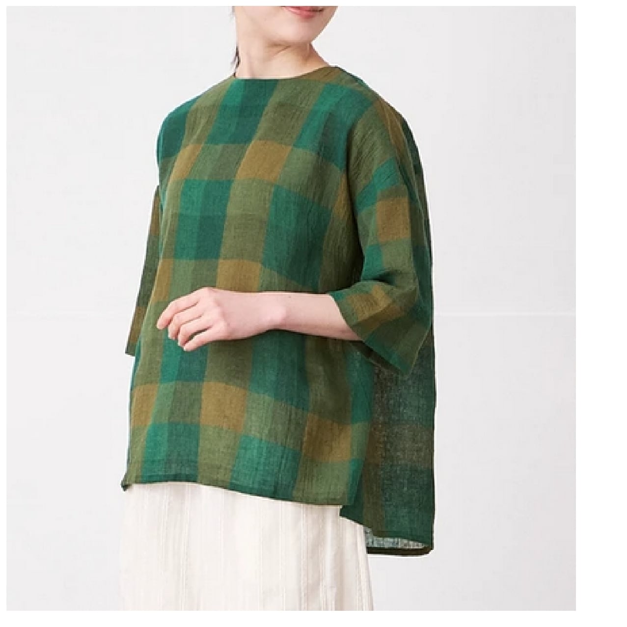D*g*y (デコ・カンパニー) プルオーバーブラウス 綿麻ブロックチェック /M/GRN/D9629